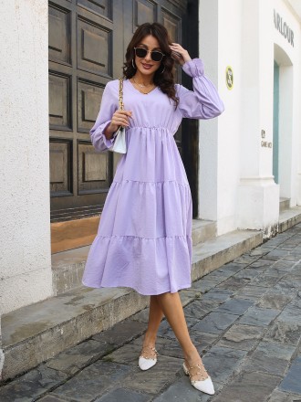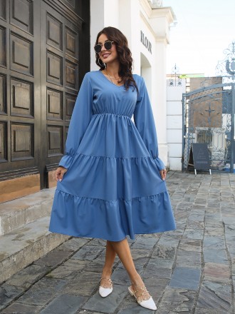 Dress Wholesale Bamboo Jie Mochi dress horn sleeve V -neck big dress mid -long skirt female spring a...