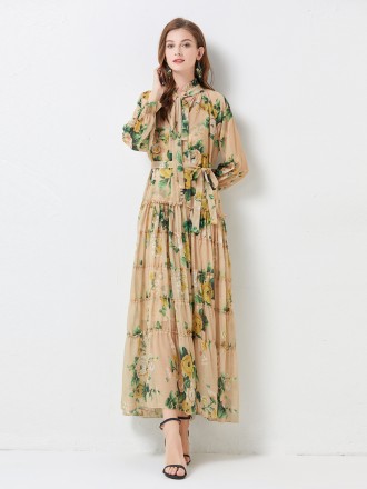 Dress Wholesale Australian new two -piece dress long skirt single -breasted long -sleeved printed st...