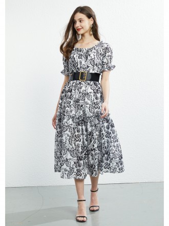 Dress Wholesale High -waist thin printed skirt big vacation shooting skirt with waistband photograph...