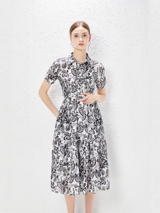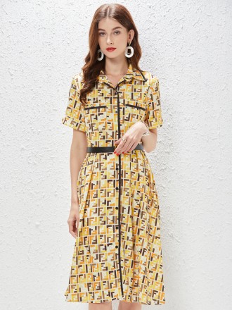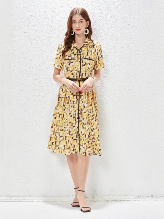 Dress Wholesale Brand women's lapel shirt style dress, single breasted short sleeved spring/summer n...