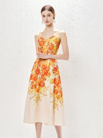 Dress Wholesale Spring and summer new positioning printed suspender dress female V -neck minor sexy ...