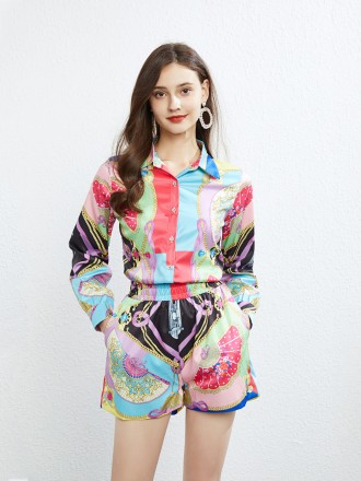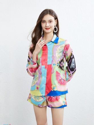 SUITS SEPARATES Wholesale Temperature printing two -piece single buckle lapel shirt stitching button...