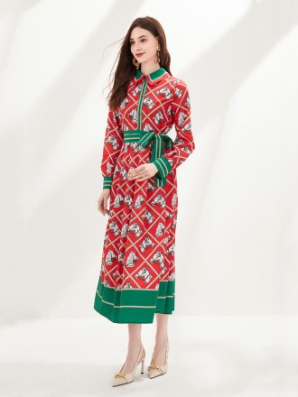 Dress Wholesale Women's big -name red plaid animal printed line with bow long skirt spring season fa...