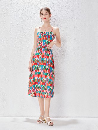 Dress Wholesale Deep V -neck dress printing back skirt Women's summer new beach skirt