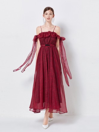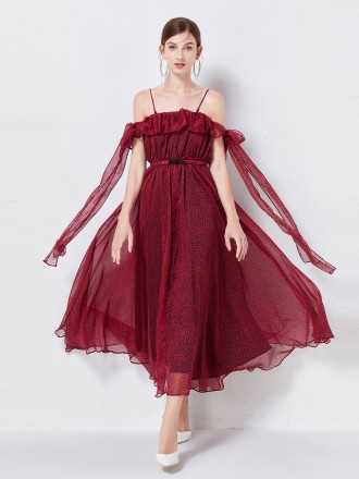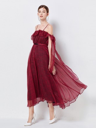 Dress Wholesale Printing lace dress with elegant chiffon two -piece medium -long skirt, foreign styl...