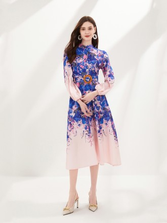 Lace Chiffon Wholesale New flower pattern printing Posmian style color matching shirt