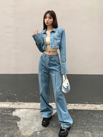 Spring and summer new hot girl cool design sense short jacket denim jelly outer set female exposed w...