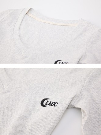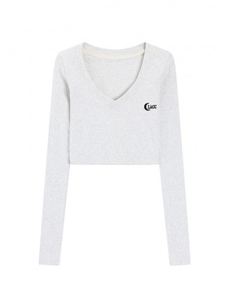 Spring New Grey Spicy Girl Pure Desire Short V-Neck Long Sleeve T-shirt Women's Tight and Slim Botto...