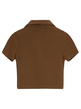 Summer new American retro hot girl POLO lead V -neck short -sleeved T -shirt high waist slim insline