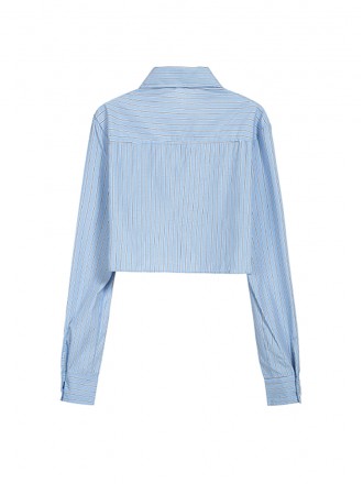 Spring/Summer New Embroidery Design Academy Style Shirt Women's Blue Stripe Short Top