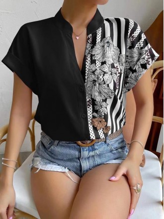 Lace Chiffon Wholesale New flower pattern printing Posmian style color matching shirt