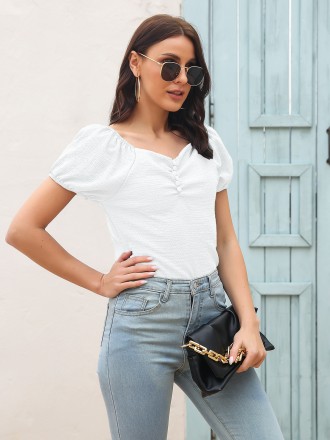 Lace Chiffon Wholesale Bubble sleeve V -neck short -sleeved women's top new loose spring spiny shirt...