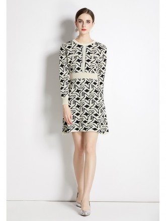 High -end knitted dress autumn and winter new ladies are thin and thin French -style thousand birds ...