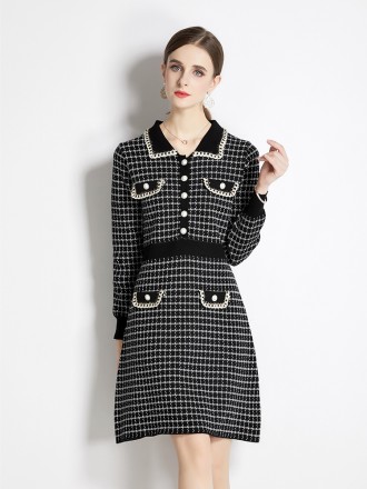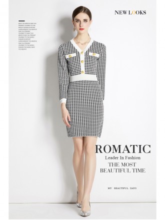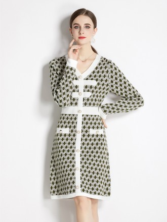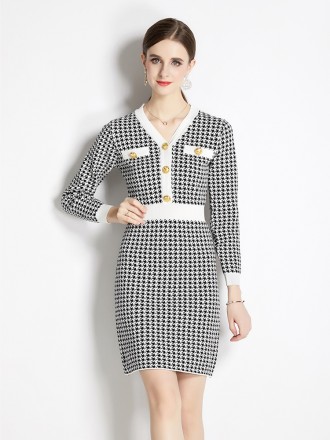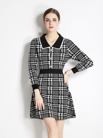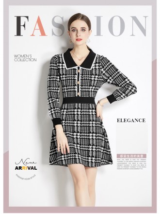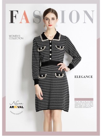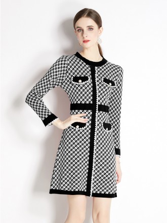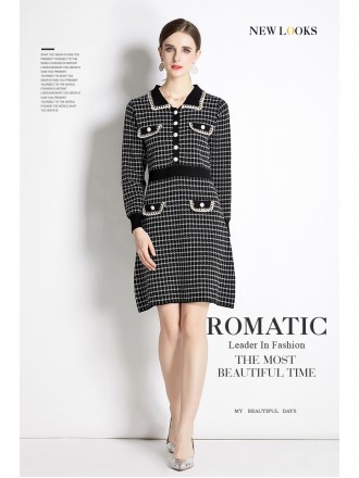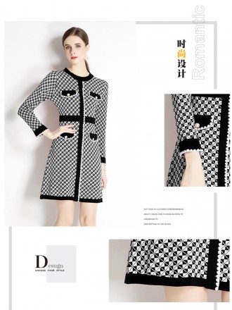 High end knitted dress, autumn and winter, new style celebrity temperament, slim French plaid small ...