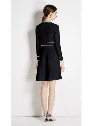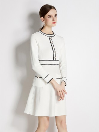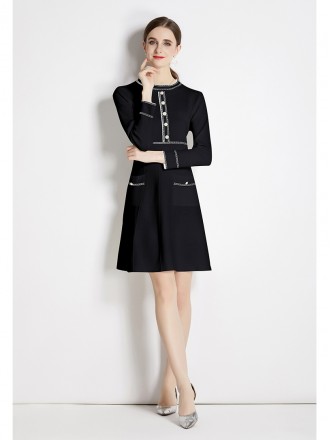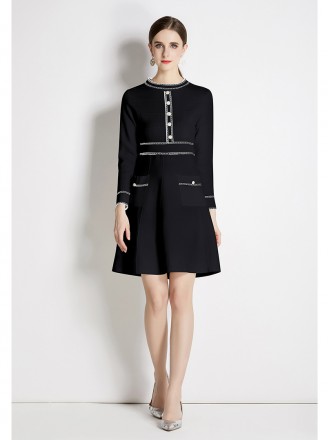 High -end knitted dress autumn and winter new lady temperament is thin French round neck little ince...
