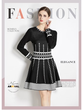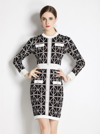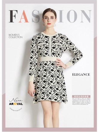 High end knitted dress, autumn and winter, new fashion trend, slim French round neck bottom skirt, s...