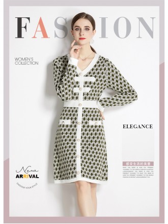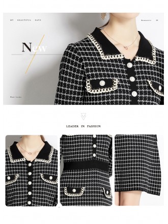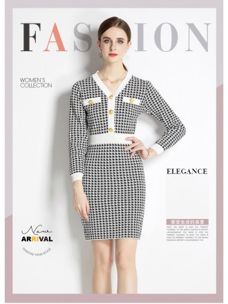 High -end knitted dress autumn and winter new ladies temperament is thin French square small incense...