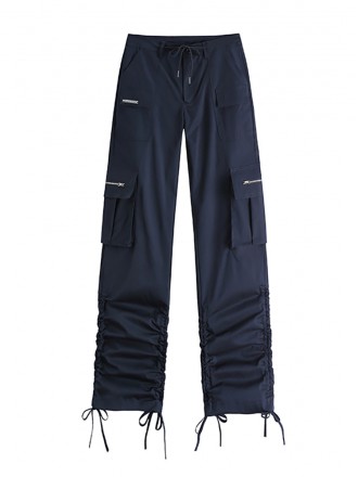 Autumn new American straight leisure pants female pumping rope wrinkles and mopped loose wide -leg w...