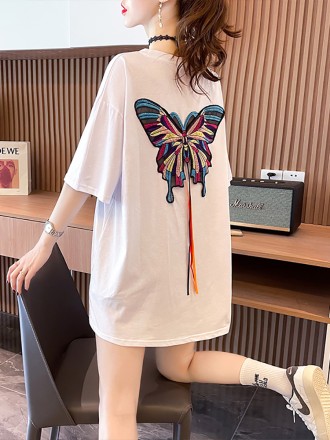 Butterfly Embroidery Personalized Short Sleeve T-shirt Women's Summer Versatile Design Feeling Small and Loose, Be Caref