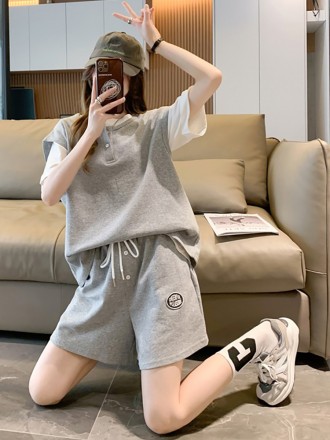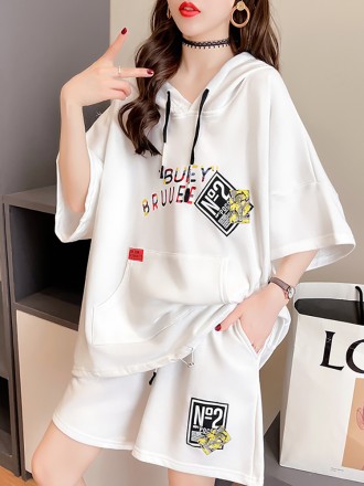 Loose casual short sleeved T-shirt and sports pants two-piece set for women's new summer fashion set