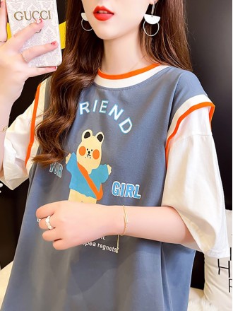 Short sleeved T-shirt for women Spring/Summer Korean design, cartoon sweater, loose top for women