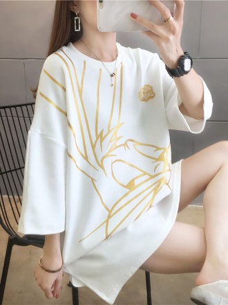 Cartoon gilded short sleeved t-shirt for women's ins trendy new summer clothing Korean version base shirt