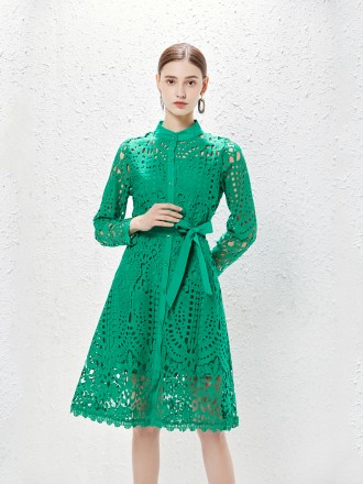 Dress Wholesale Spring and summer new heavy workers lace hollow single buckle large dressing dress t...