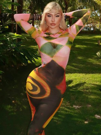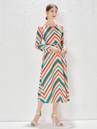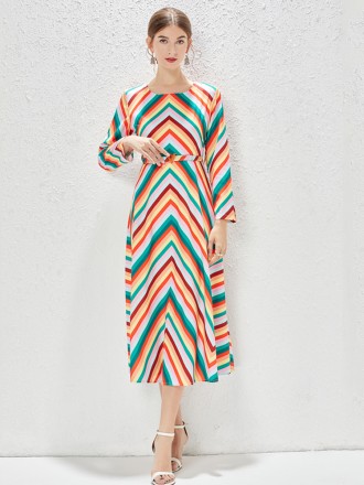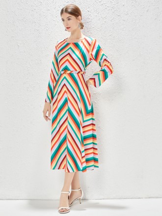 Dress Wholesale Women's summer new fashion printing round neck long -sleeved temperament long skirt