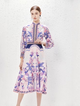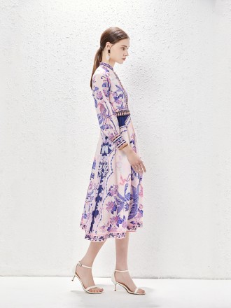Dress Wholesale Australian niche purple positioning printing exquisite button high -end dress high -...