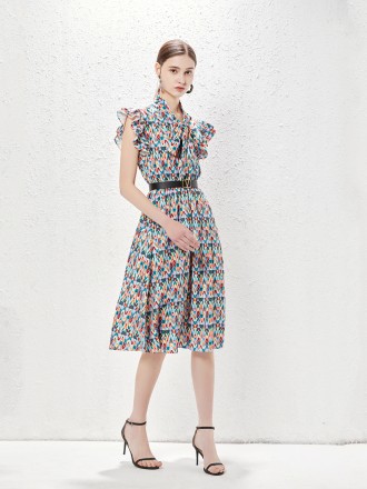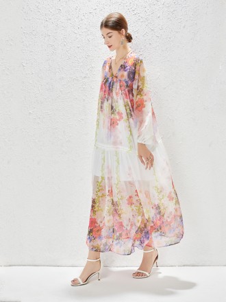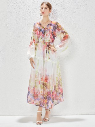 Dress Wholesale Australian design niche dress positioning printed high -end chiffon dress V -neck sk...