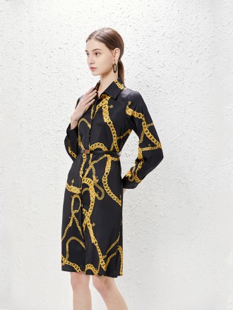 Dress Wholesale Spring and summer new satin gold chain printed single -breasted temperament elegant ...