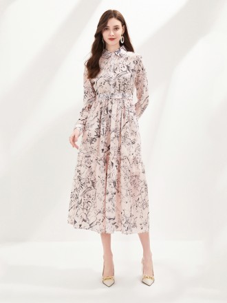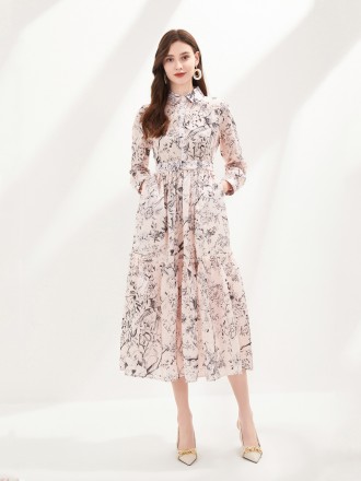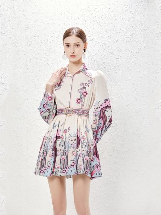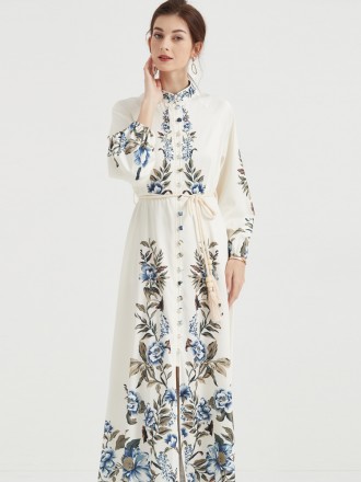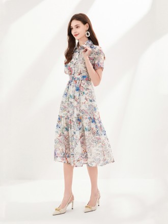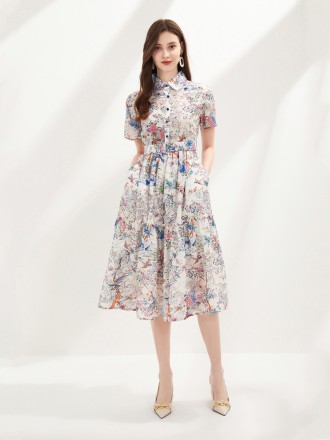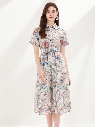 Dress Wholesale Spring and summer new positioning printed single -breasted high -end dress women's l...