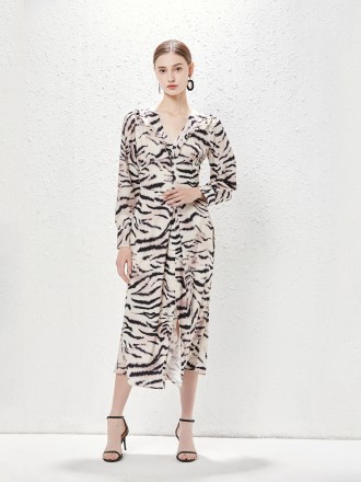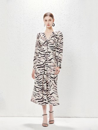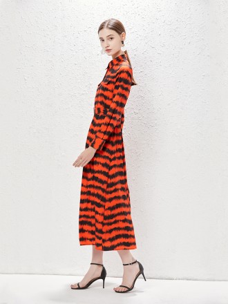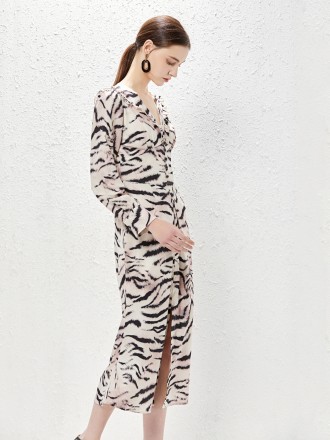 Dress Wholesale Spring and summer new lapel long -sleeved pocket dress female zebra pattern big name...