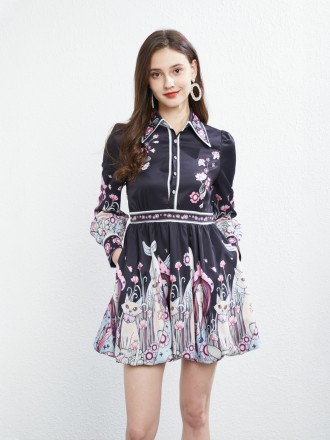 Dress Wholesale Design Fairy Skirt Spring and Summer New Fashionable Printing Black Bowlon Dress Dre...