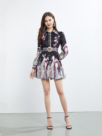 Dress Wholesale The new high -quality printed one -bodied shorts and heavy work stereo single -breas...