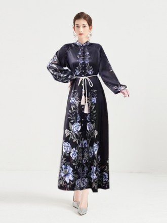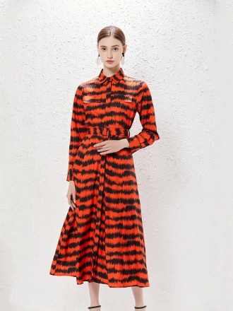 Dress Wholesale Stringing positioning printing lapel single -breasted dress long skirt women's fake ...