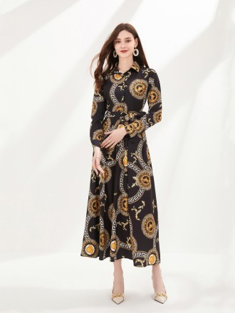 Dress Wholesale Queen chain avatar printed shirt -style dress long skirt fashionable retro skirt chi...