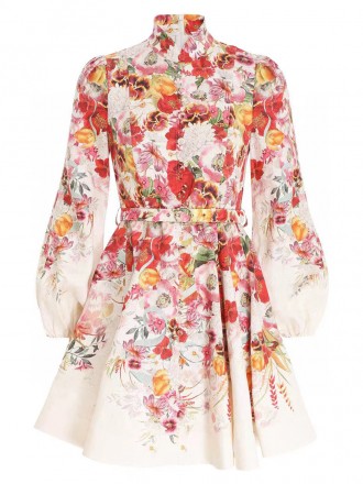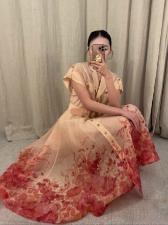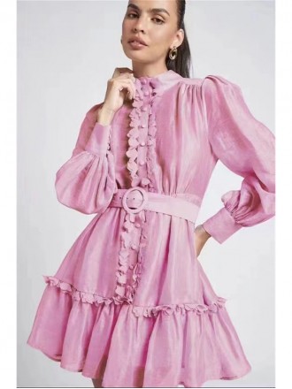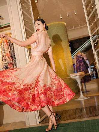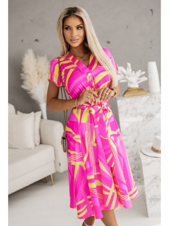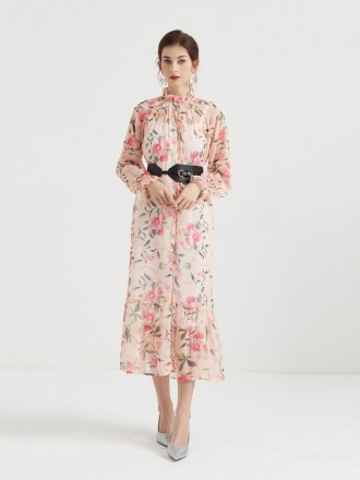 Dress Wholesale Australian big -name dress pink printed V -neck short -sleeved single -breasted wais...