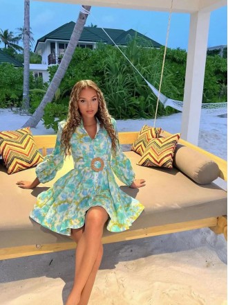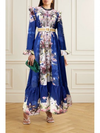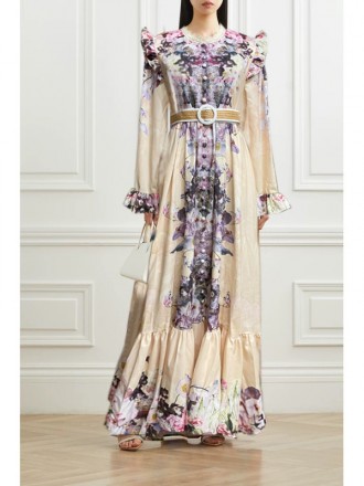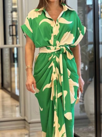 Dress Wholesale Summer new women's Australian niche design printing single buckle tie belt dress lan...