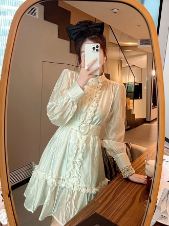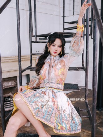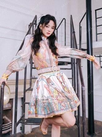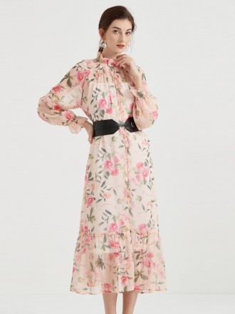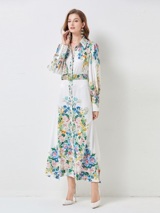 Dress Wholesale Spring and summer fresh positioning printed classic single -breasted lantern sleeve ...