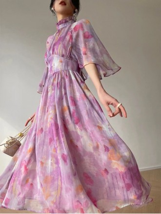 Dress Wholesale Prosperous purple kite romantic French print dress light luxury nail bead lantern sl...