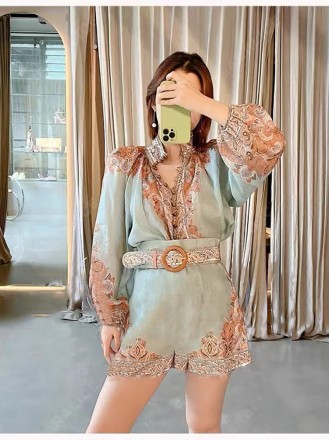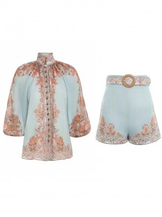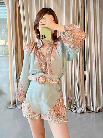 Dress Wholesale Two -piece single -piece buckle collar lamp cotton cotton jacket loose shirt top+sho...