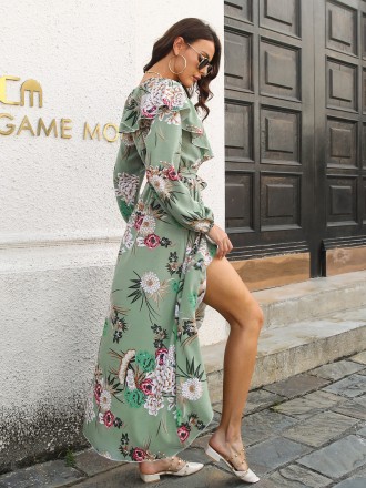 Dress Wholesale Lotus leaf V -neck long sleeve dress wraps open long skirt new women's new female ne...