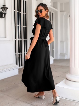 Dress Wholesale Ruffle Sleeves Large Swing Long Dress Summer V-Neck Solid Color Lace up Dress Ruffle...