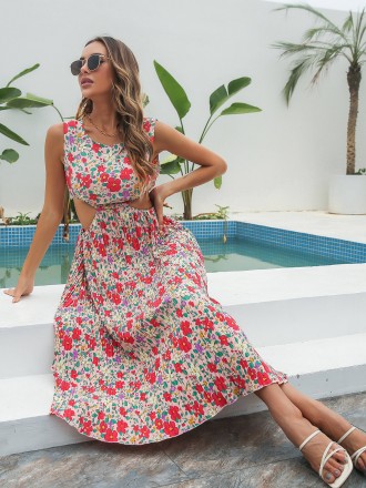 Dress Wholesale Hanging neck chiffon skirt, deep V-neck, backless A-line skirt, beach skirt, floral ...