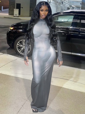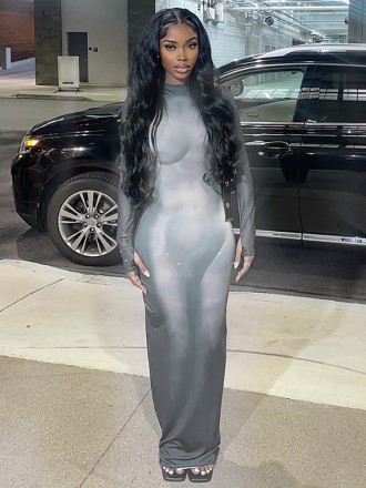 Dress Wholesale Spring and summer new women's fashion printing sexy back hollow long -sleeved bag hi...