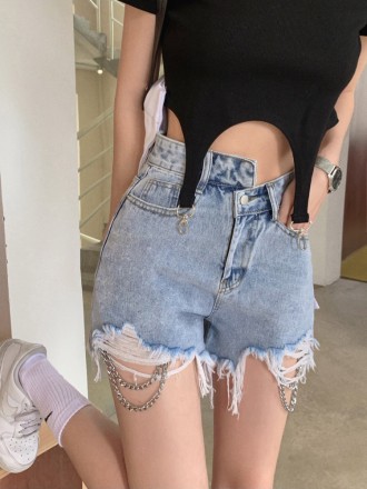 Polarized Maobian denim shorts female high -waist chain hot pants hot pants new misplaced design A -...