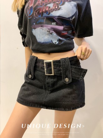 Spring new hot girl must have low -waisted A -line denim skirt skirt with belt INS tide summer