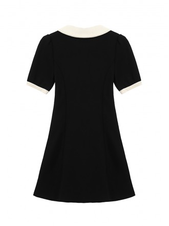 Spring and summer new POLO collar black dress, small, small incense short skirt
