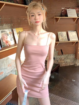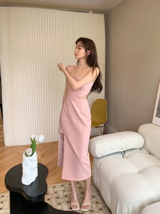 Summer new style pure desire hot girl high -level split -out split pink suspender dress sexy female ...